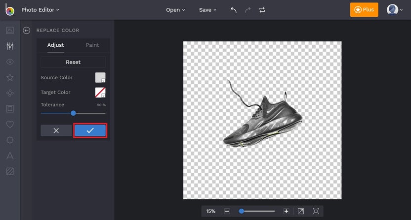 After clicking Remove Background, you’ll see a preview of your results appear. If you’re happy with them go ahead and click the checkmark to apply them to your image.