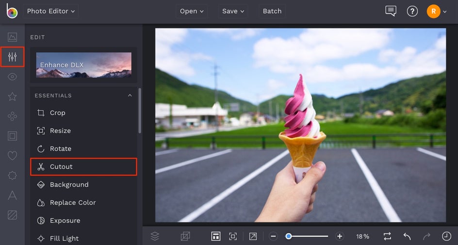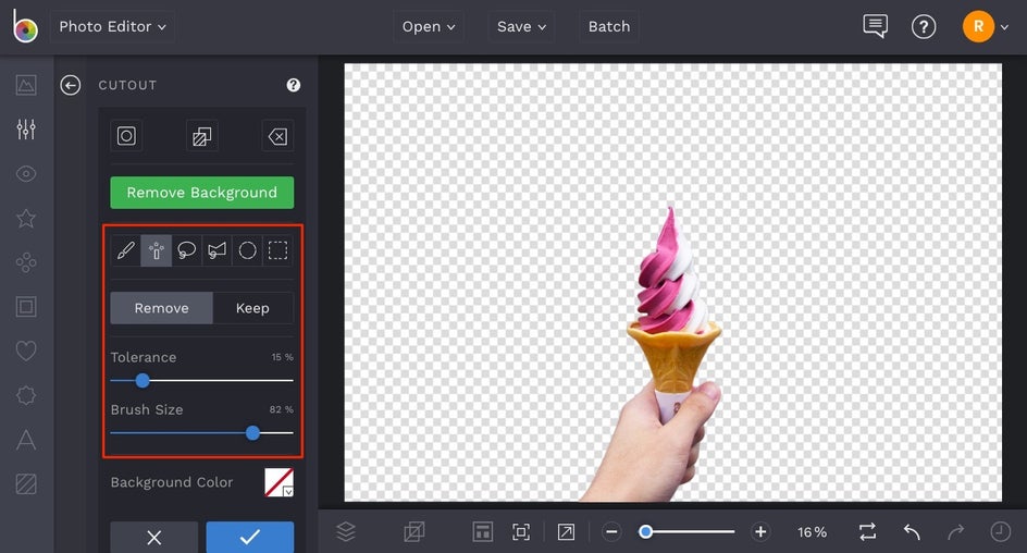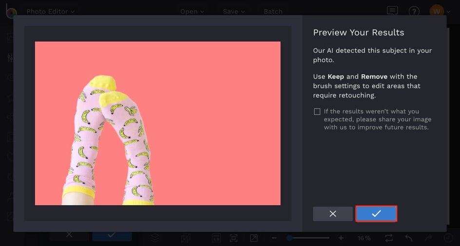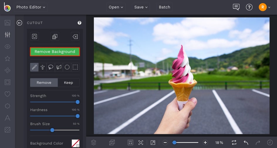 To do this, select Edit and then Background Remover from the Remove/Replace tab. This AI tool will automatically get to work to detect the subject in your image.