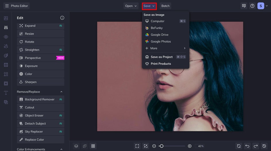 With those annoying flyaways discreetly removed from your image, all that’s left to do is to save it. Click Save at the top of the screen, then choose your desired save location.