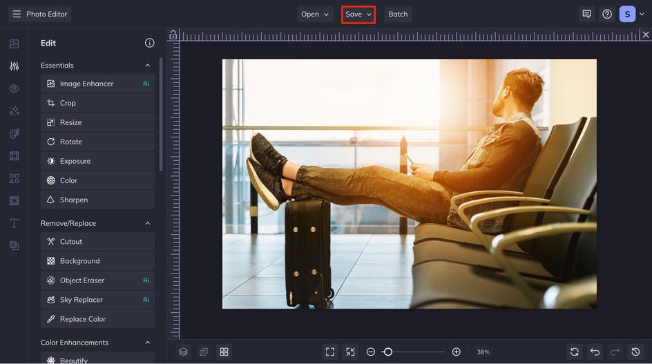 Lastly, you are able to save your new image to your desired save location by clicking the Save button at the top of your canvas.