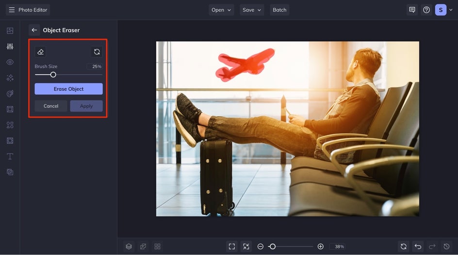 Once you are satisfied, click the Erase Object button, and your unwanted object will disappear! Click Apply to apply the changes to your photo.