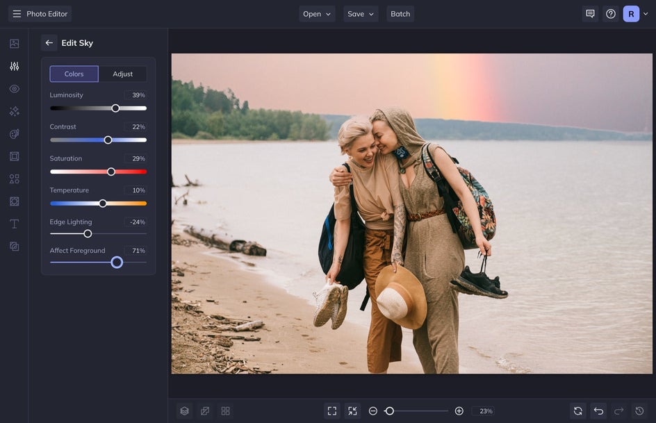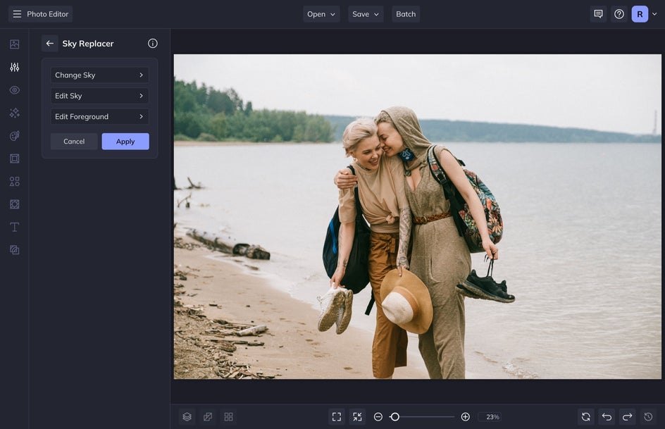 The Sky Replacer tool is just as the name suggests, made for skies! This tool uses powerful AI to detect and replace the sky within any photo in just a few clicks.