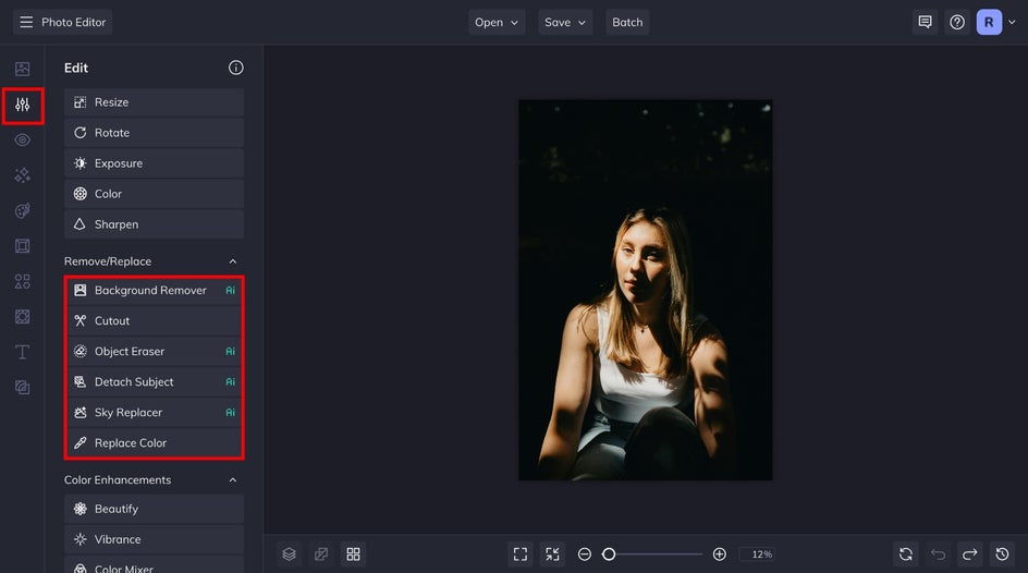 To start, we are going to look at the Remove/Replace tools in the Edit tab of BeFunky’s Photo Editor, which has tools that can be used on both Mobile and Desktop.