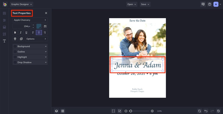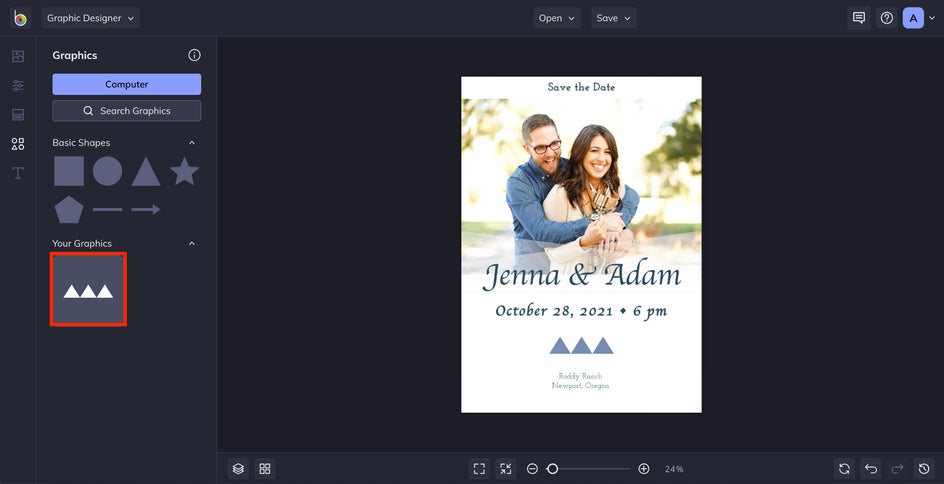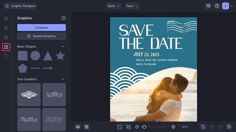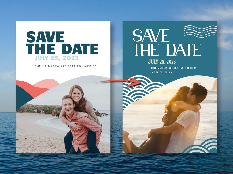 For an even more personalized look, add or replace graphics to better go with your wedding theme. When making a lot of edits, make sure to check out these save the date best practices!