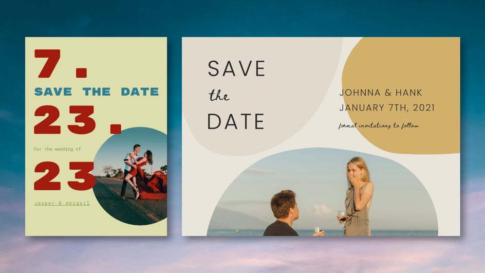 Save the dates are an initial announcement preceding the invite, so they don’t need to be too detailed or complicated. With the Graphic Designer’s wedding sets, creating a custom save the date card only takes a few minutes - even if you don’t have any design experience.