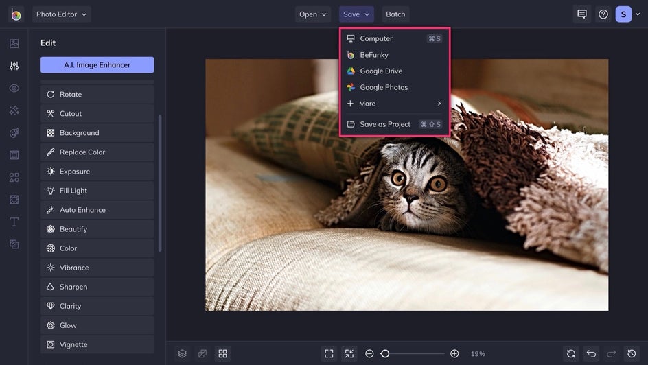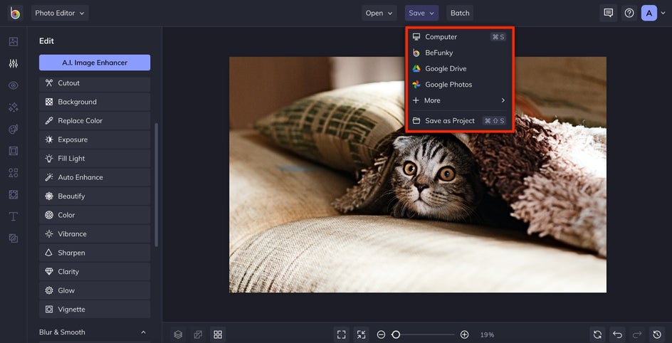 Click Save at the top of the canvas to export your sharpened photo. A high-quality PNG will provide the best digital resolution, though a high-quality JPEG takes up less file space. A print-quality PDF is best for framing and printing.