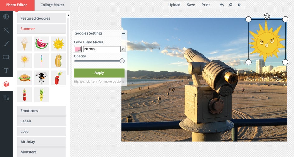 Select your Goodies from the Summer Goodies section (or any other Goodies section!), you can add as many as you want to your photos, you can resize, rotate, invert, spin, and change the color of your Goodies all with the click of a mouse!