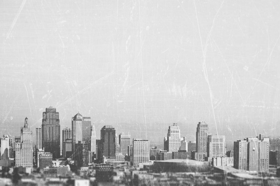 Buildings. Even a current photo of your cityscape can look like it was taken with a vintage camera when you add a distressing texture background like Grunge.