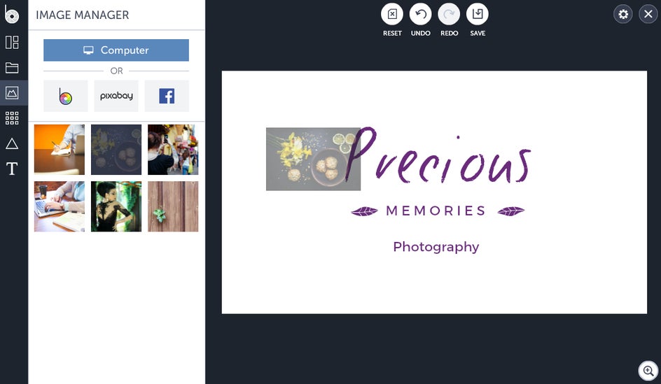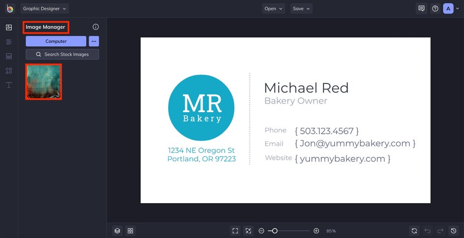 For this example, we’re going to create a business card for a local art gallery owner. Navigate over to the Image Manager by clicking the topmost icon on the left menu bar.
