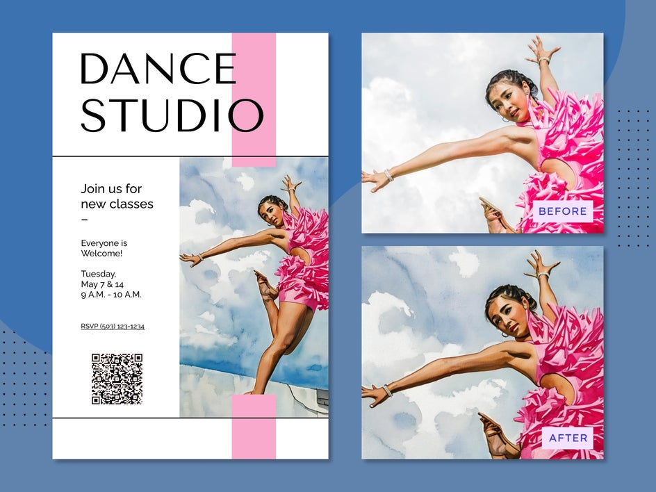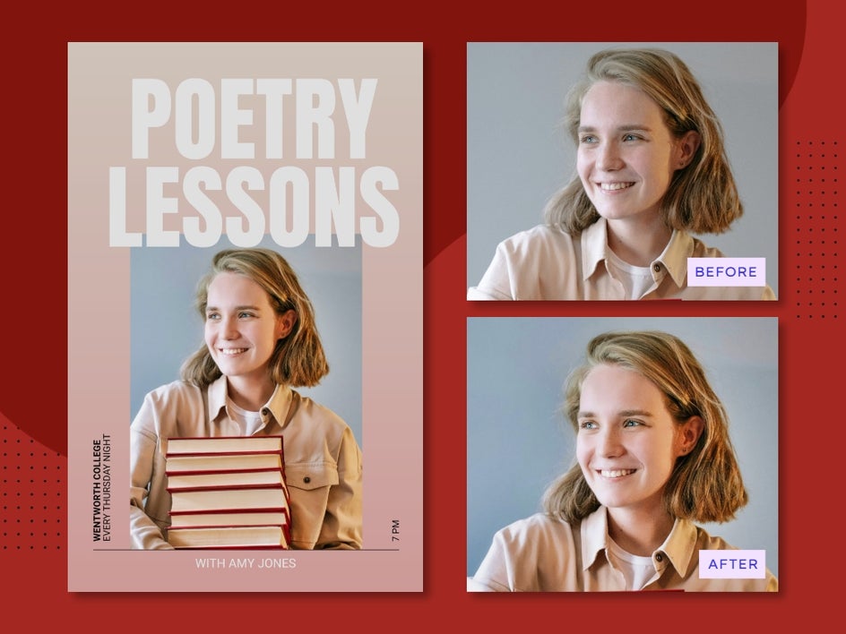 If your event poster includes a portrait, like a headshot of the instructor or host, be sure to apply the Portrait Enhancer to make them look their best. It subtly smooths skin, brightens eyes, and adds a polished look that’s still natural. It’s a game-changer for touching up portraits!