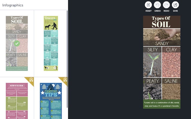 First, head into the Designer. Under "Templates", head over to "Blogger Resources" and select "Infographics." I like this template to use for our design.