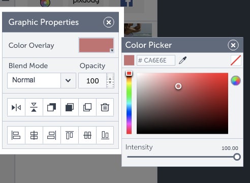 Now I'm going to add back in the overlays, so our text can pop out on top of the pictures. I'm going to change the color of the overlay from grey in the template, to a nice rosy color.