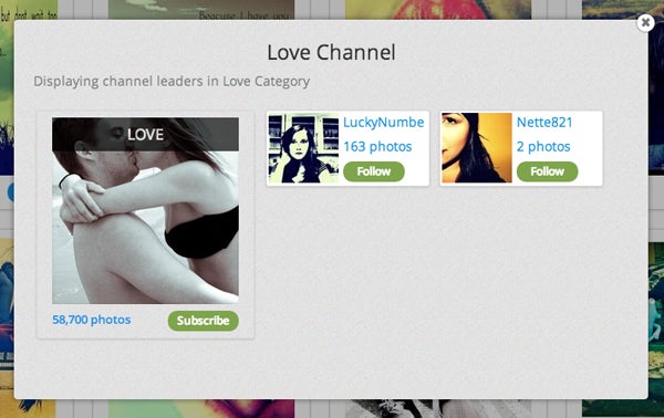 Lastly, the 'Channel Leaders' link will show you who's photos are getting featured, who's getting a ton of facebook shares, pins, tweets, and likes. From here you can follow them so their photos get added to your 'My Stream' page.