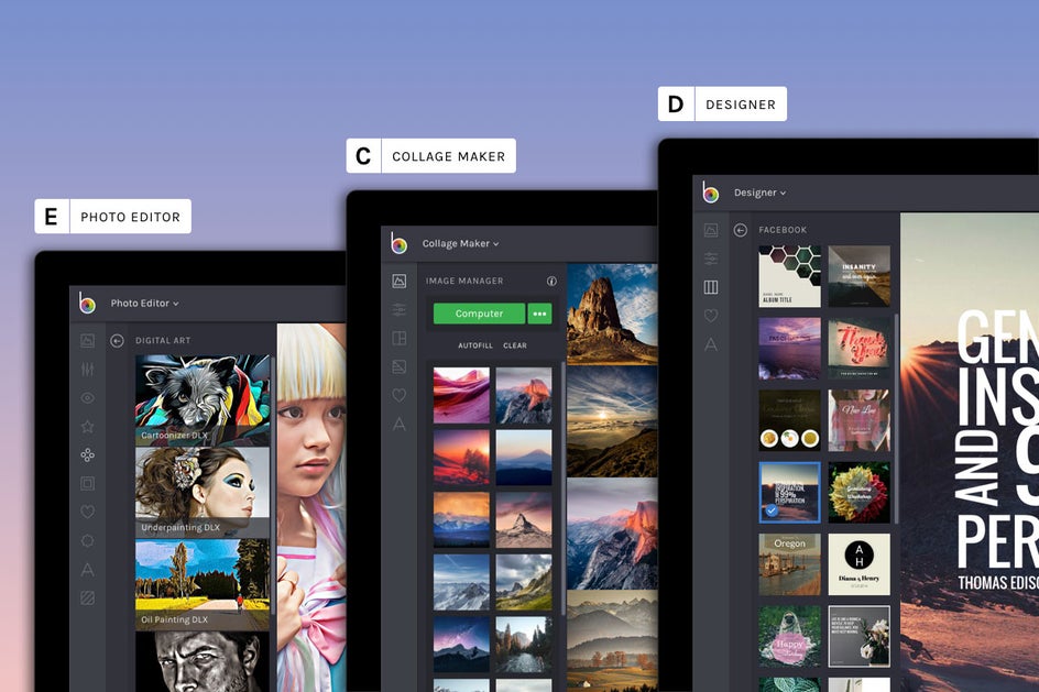 We streamlined the uploading process in our entire platform, so now all you have to do is drag-and-drop to upload your photos and .BFD projects! Whether you’re in the Photo Editor, Collage Maker, or Designer, you can add an image right into whatever platform you’re working on simply by dragging and dropping it into the interface. It will then fill up the Photo Editor canvas for making edits, fill a cell in your Collage Maker project, or become part of your design in the Designer.