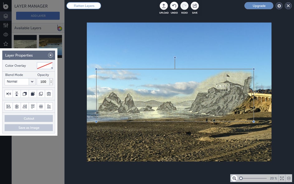 Once you’re happy with how your new “then and now” photo looks, it’s time to save it. Click Save at the top of the screen, then select your desired save location.