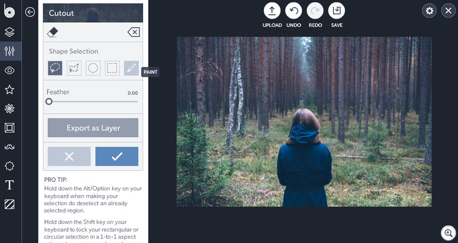 Because using the Lasso or Polygonal tool just doesn’t cut it when you’re working with something intensely detailed, we decided to find the method in the madness and added a new paint tool to Cutout. It works pretty simply: select it and just paint over the areas of your photo you want to cut out. No muss, no fuss.
