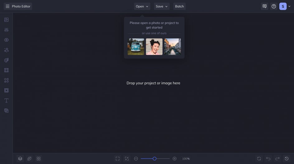 Your photos are ready to transport you to a whole new world of colors and atmospheres. Click here to get started by opening your image from your computer, or drag and drop it into the canvas.