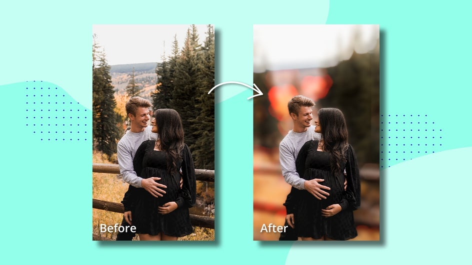 If your photo has a lot of things going on and it's making it hard for you and your partner to stand out, consider blurring the background to draw attention. In this photo, we used the Lens Blur tool to create a more subtle background that features the couple as the focal point – without removing the extra dimension that the background brings.
