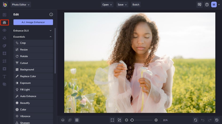 Thankfully, BeFunky’s Photo Editor contains all of the essential features you’ll need to make your work shine. The Edit menu, for example, contains helpful tools for adjusting exposure, cropping to a particular aspect ratio, or resizing your image to meet the publication’s requirements. The A.I. Image Enhancer also provides a one-click solution to fixing brightness, highlights, shadows, color, and more.