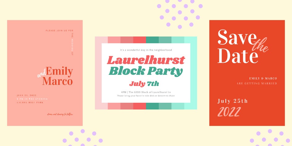 Choose a theme and then choose elements that are in alignment with that theme. If you have a minimal theme, use thin lines, hollow design elements, minimal color, and sans-serif typefaces. If you are creating a rustic piece, use large scripted typefaces with texture, add a wash of texture to your background, and use toned-down colors.