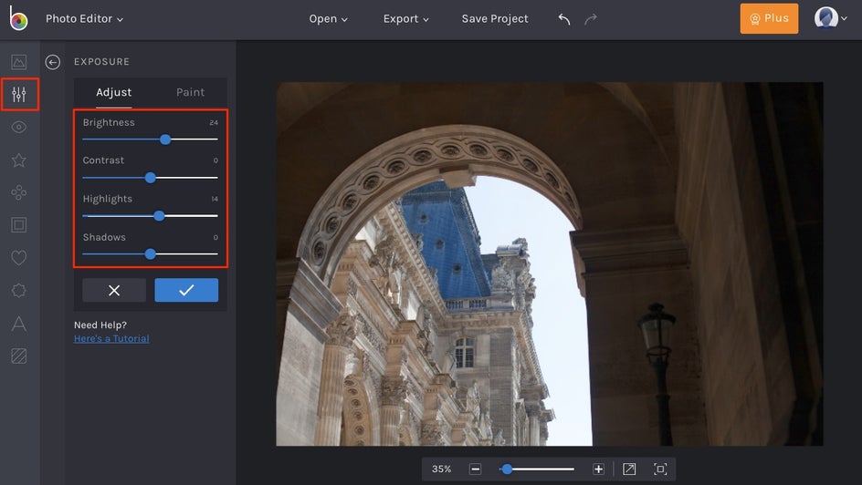 To quickly enhance the brightness, shadows, highlights, and contrast of your photo, click on the Levels tool in the Edit menu.
