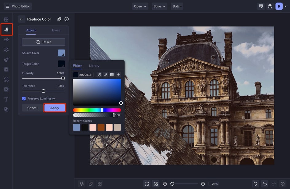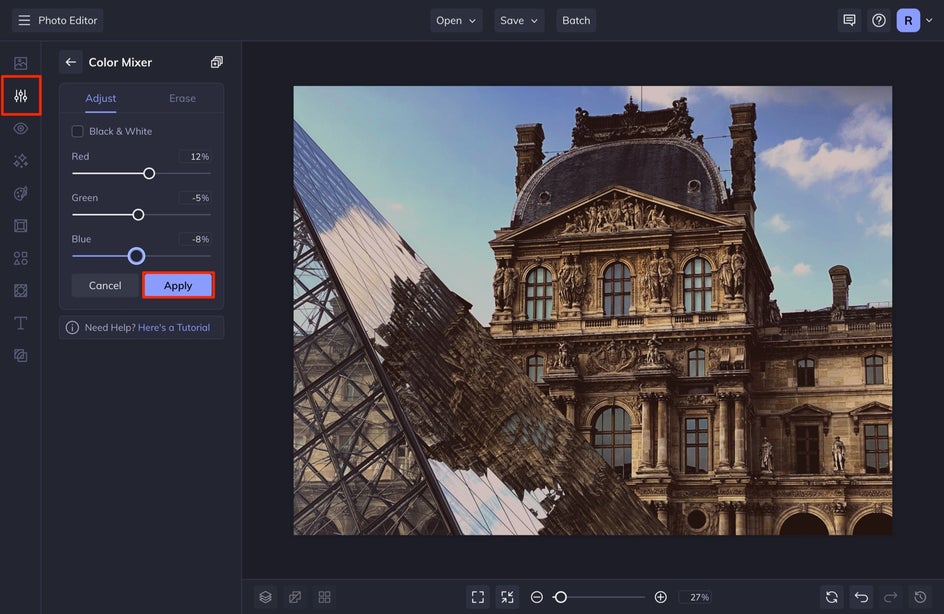 The Color Mixer Tool helps to balance out the Red, Green, and Blue in your image. This makes your image’s color richer and helps to correct the colors that your camera may otherwise not be able to capture correctly.