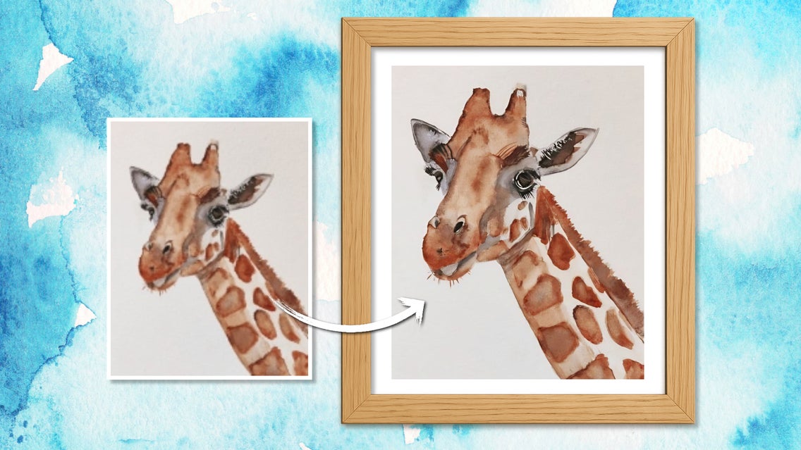 As an artist, one of the most consistent streams of income you can have is selling prints, whether that’s online, at craft fairs, or at your local boutiques. But what happens when you have artwork you know would make a great print, only to find that it was originally scanned at a low resolution or that the digital file has become compressed? Prints need to be high-quality, especially at larger sizes, and digital retouching can be painstaking or just plain ineffective. Thankfully, with the Photo Editor’s powerful Upscale tool, you can effortlessly enlarge your artwork while also enhancing detail and clarity. No need to choose between a large size or a high resolution – with the AI-powered Upscaler, you can have it all.