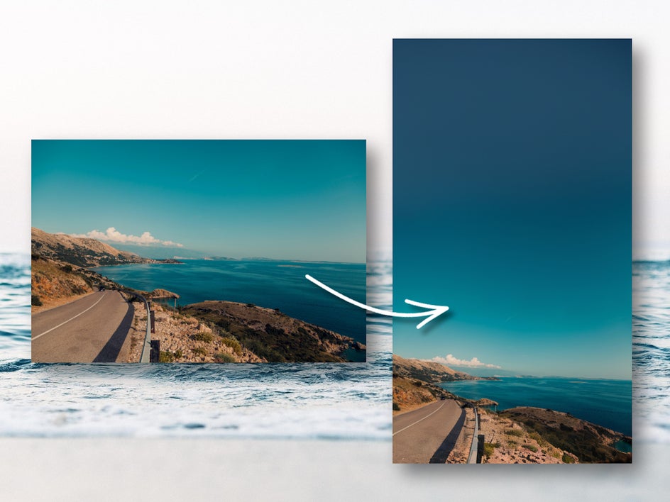 Travel photos, particularly landscape-oriented ones, can be tricky to fit vertically into TikTok or Instagram Reel covers. By simply cropping or zooming you, you risk cutting out most of the image. The Expand tool can reorient your image to preserve the scenic beauty while still filling every inch of space. Try out these travel photo editing tips to make your stories even more scroll-stopping.