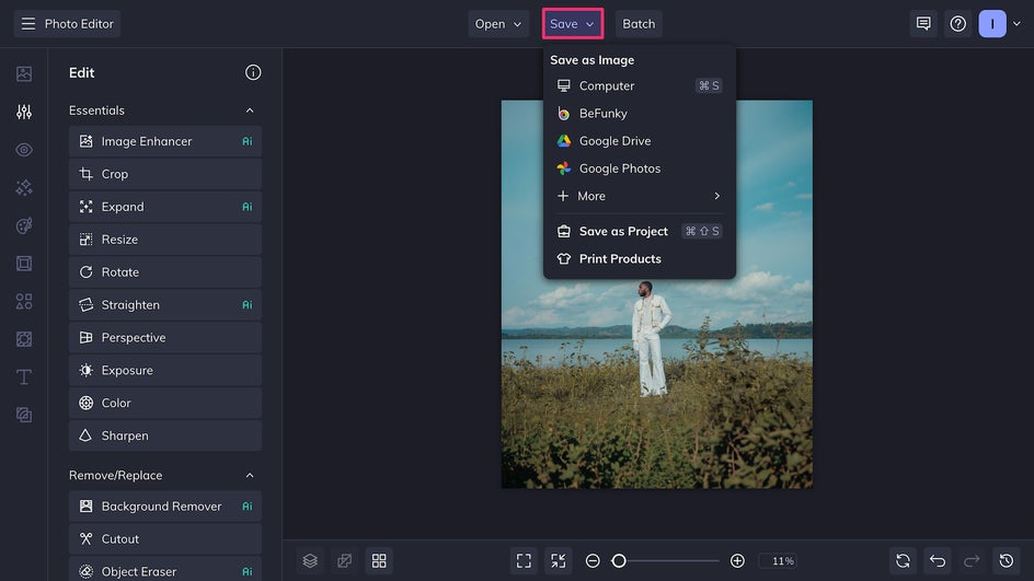 Once you’re satisfied with your expanded image, simply click the Save button at the top of the canvas and save as a high-quality PNG for the best digital resolution.