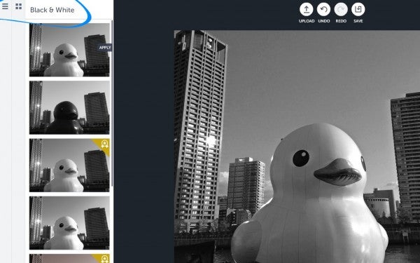 Once in the Photo Editor, navigate to Effects in the main menu on the left, then select your desired Photo Effect category. You can also experiment with other editing tools to achieve the look you’re after. In this example, we’ve applied a B&W Tones effect to each image, followed by a Vignette (which you can find in the Edit menu).