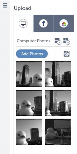 Next, you’ll want to upload your film strip photos to place into your collage template. Navigate to the Image Manager in the main menu on the left, then click Computer to select the images from your own files. Alternatively, you can click the three dots (…) to upload imagery from your BeFunky account, Facebook, or Google Photos.