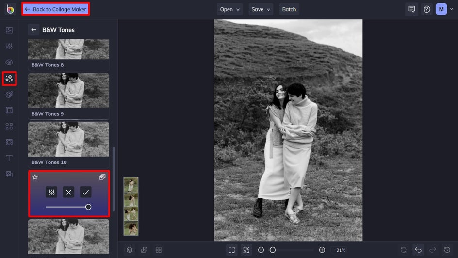 Once you’re happy with how your image looks, click Back to Collage Maker in the top left of the screen. Simply repeat these steps for each image in your film strip.