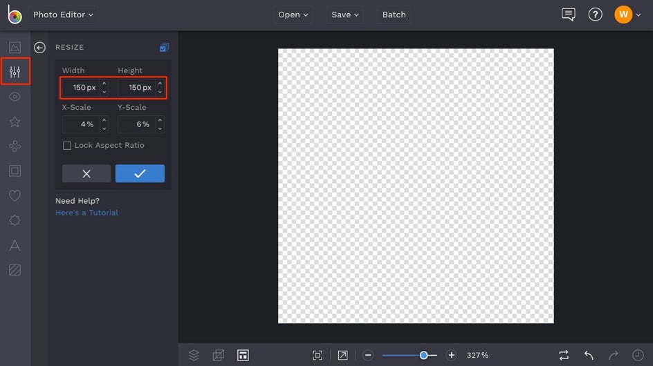 Start in the Graphic Designer’s Blank Canvas tab and set your canvas to 150 x 150 px for a perfect 1:1 YouTube watermark size. Then, click Create.