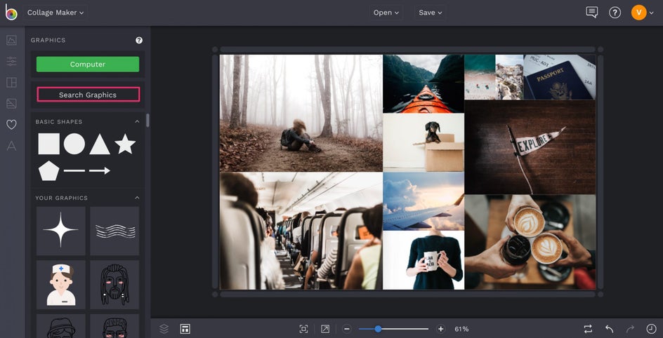 Now that you have your board set up, you can search our expansive graphics library to add some graphics to your vision board. These graphics can help add a little extra style and flair to your board, making it all the more appealing to look at. Click on Search Graphics and click on each of the graphics you’d like to add to your board.