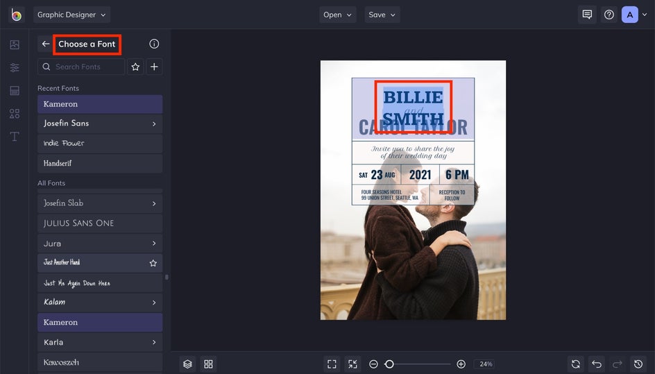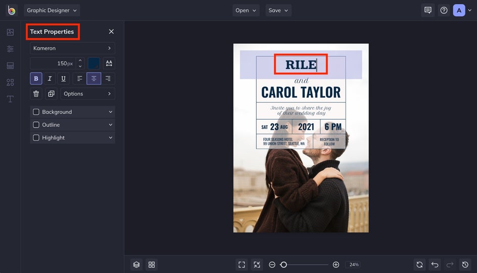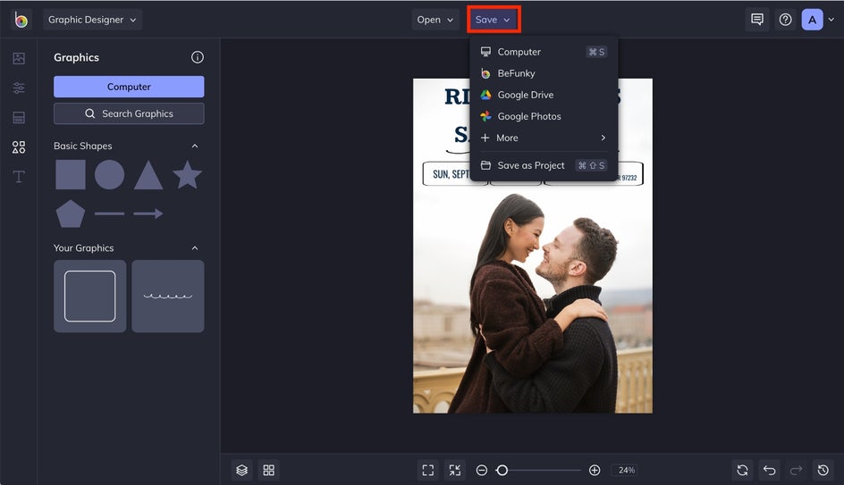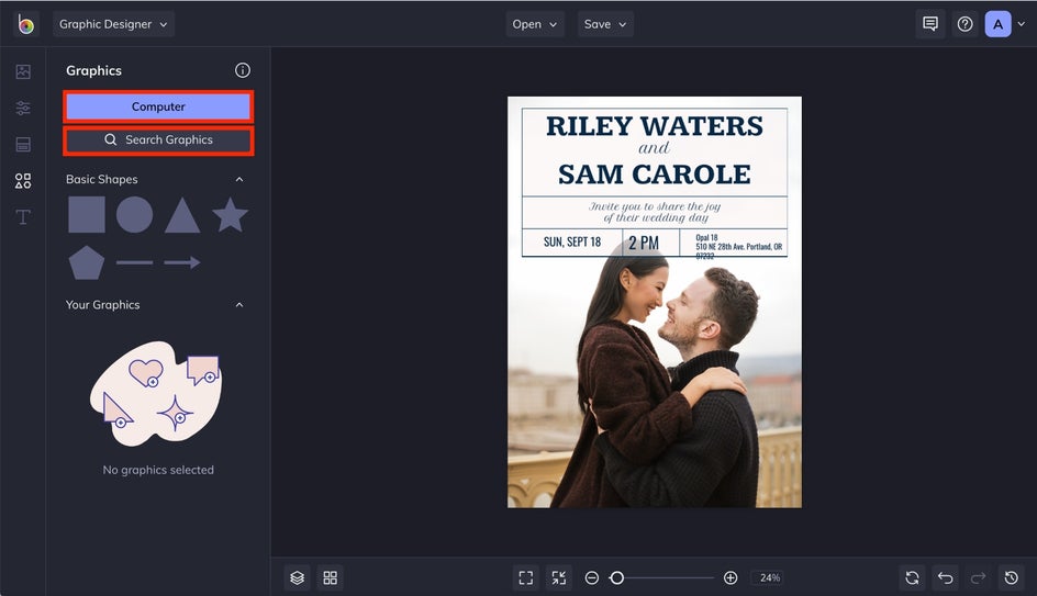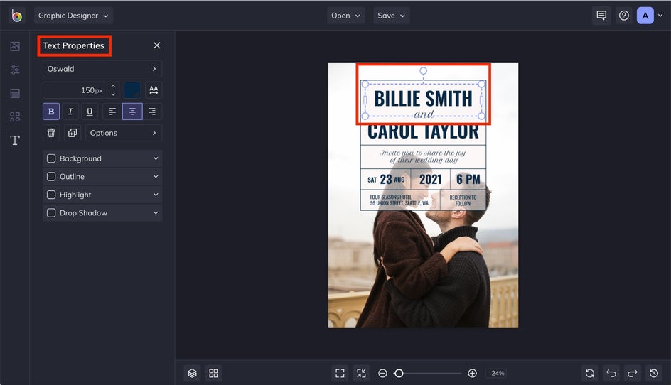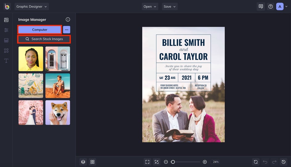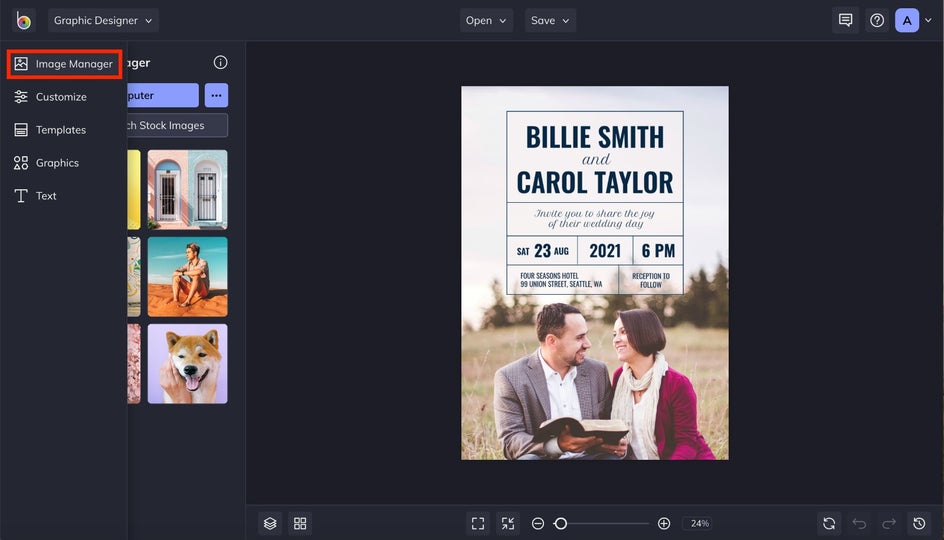 Wedding planning can be tedious and stressful, especially when it comes to your invitations. With so many options to choose from (many of which cost a small fortune), it can be hard knowing where to begin. Thankfully, BeFunky’s Graphic Designer is home to customizable wedding templates, including wedding invites, which give you the perfect starting point for your design.