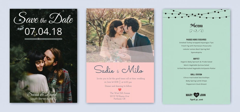 BeFunky's Graphic Designer offers a treasure trove of stunning pre-designed templates that make crafting your own save-the-dates, invitations, wedding menus, and thank-you cards a breeze, without breaking the bank!