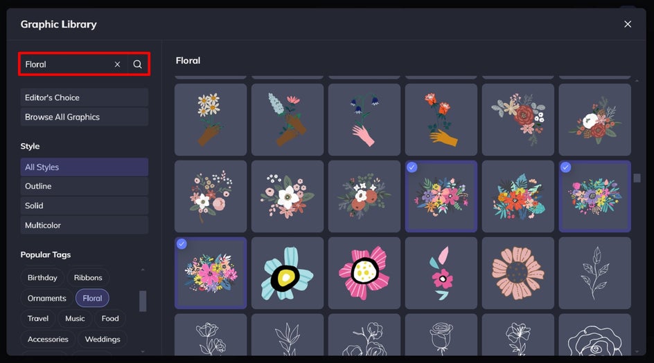 You can even search for specific graphics using the search bar in the top-left of the screen.
