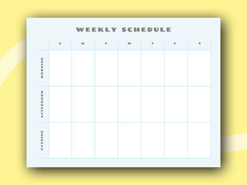 All it took was a few easy steps to create your own weekly schedule template. When it comes to your design, the sky is your limit! Don’t be afraid to personalize with different color schemes, fonts, and graphics until you’ve got the exact look you have in mind!