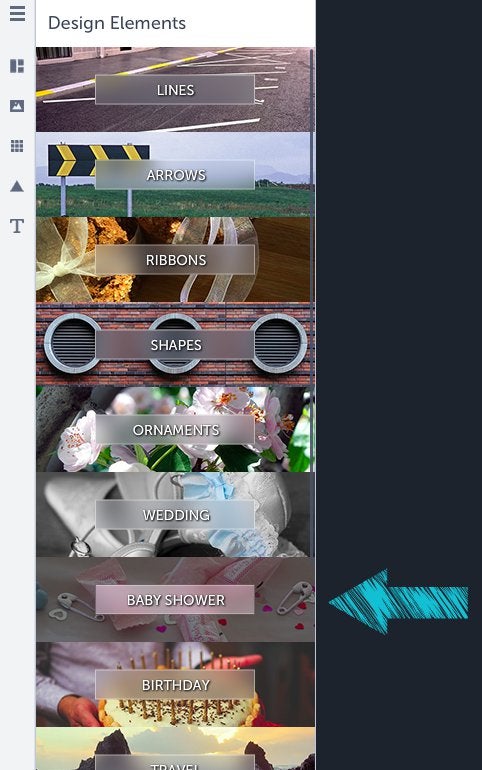 Navigate to “Design Elements” in the side bar, and select “Baby Shower”.