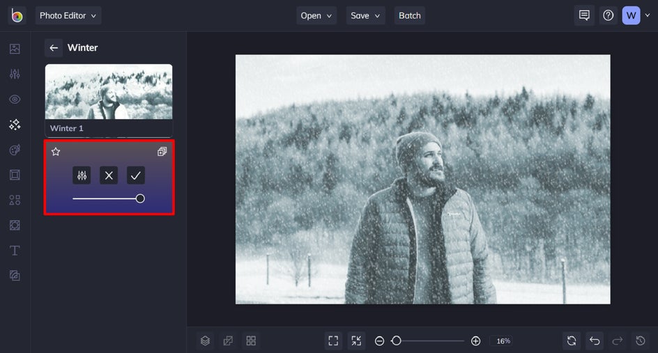 Thanks to BeFunky’s wide range of winter filters and effects, you can create stunning winter photos in just seconds. If you’ve ever wanted to add snow to photos or perfect your winter photo editing, our Photo Editor has the answers.