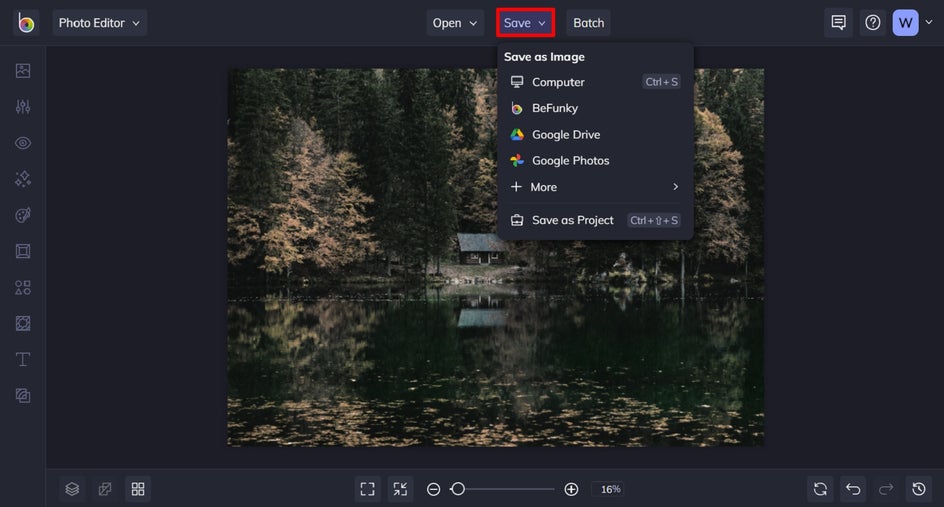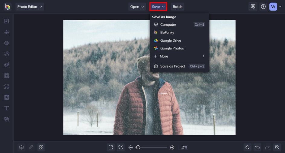 To save your new cool-toned photo, click Save at the top of the screen, followed by your desired save location.