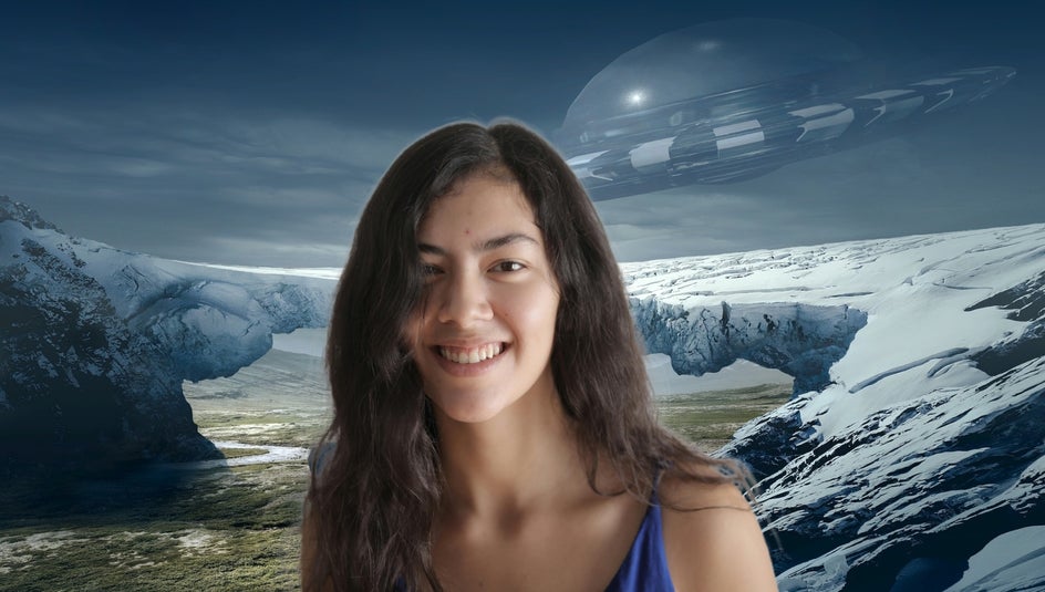 Use a background that puts you in outer space, floating among stars and planets, complete with an astronaut suit or a UFO hovering nearby.