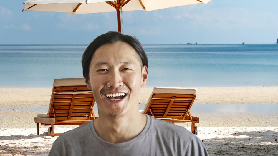 Have a background of yourself lounging on a tropical beach with a hilarious "Out Of Office" (OOO) sign, making it seem like you're taking the meeting from a vacation spot.