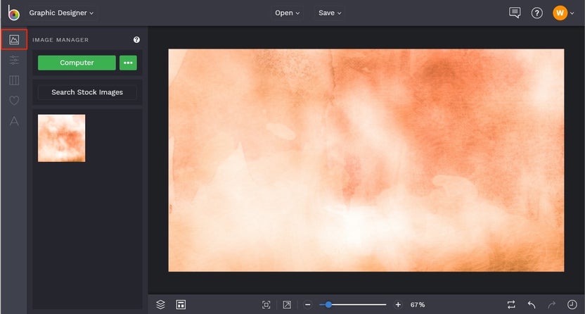 For this tutorial, we’re using a watercolor background from BeFunky’s huge Stock Photo Library. In the Stock Photo Library, simply click the images you wish to add to your Image Manager. Then, click the ‘x’ in the top-right corner to close the Stock Photo Library once you’ve finished browsing.