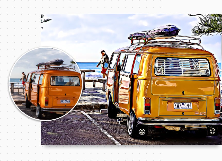Um único clique do nosso Cartoonizer e você vai passar de fotos para desenhos animados em segundos. Vá para a seção artística do nosso editor de fotos para fazer desenhos animados você mesmo, com um dos nossos cinco efeitos clássicos do Cartoonizer, ou confira o lindamente reestilizado Cartoonizer DLX na nossa seção Edição de luxo de Arte Digital. Não importa qual filtro você use para fazer desenhos animados sozinho, você estará a apenas um clique de distância dos resultados!