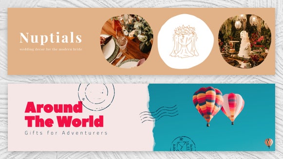 Crie o banner Etsy dos seus sonhos, sem ter que seguir instruções complicadas. Nosso Etsy Banner Maker inclui modelos personalizáveis e todos no tamanho perfeito para você começar. Basta escolher seu layout favorito, arrastar e soltar fotos de suas listagens favoritas, editar o nome da sua loja e assinar a autoria.